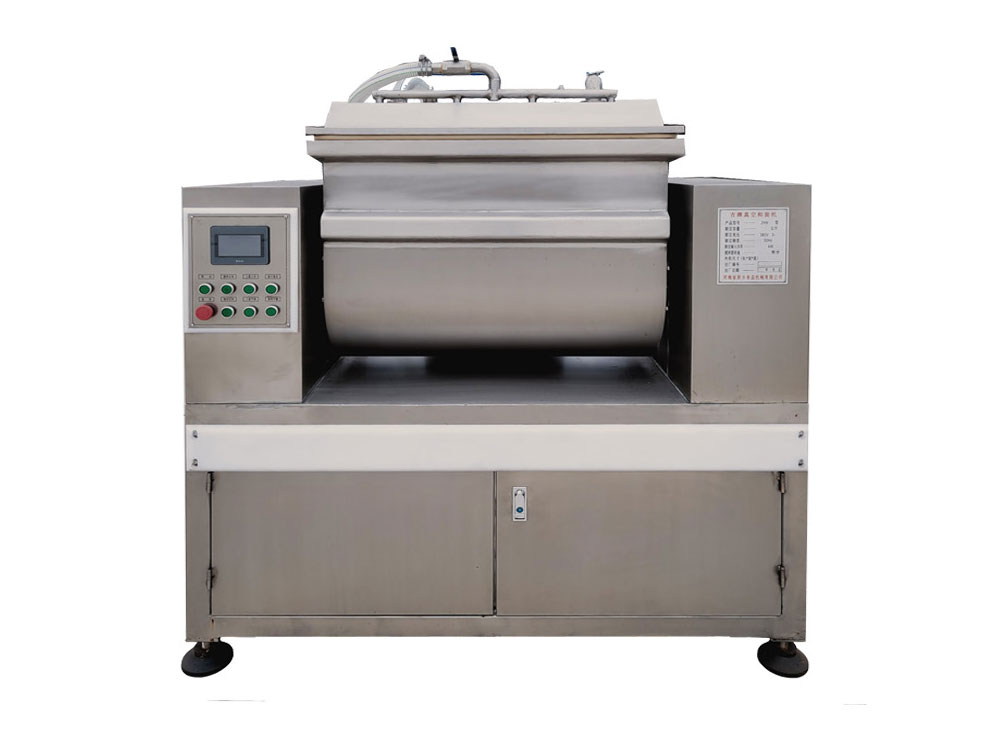 →臥式真空和面機(jī)系列  →型號(hào)50/75/100/150/200/300型  →功能  主要用來和制餃子皮、餛飩皮、鮮食面、水煮面、掛面等,若更換攪拌器,可適用于速凍行業(yè)的各種面食制品的加工?!  厣 ?、配備智能觸控顯示屏,參數(shù)自由設(shè)定,可手動(dòng)攪拌、可一鍵攪拌。并可根據(jù)工藝設(shè)定和面時(shí)間和真空度?! ?、設(shè)備由PLC控制,可實(shí)現(xiàn)自動(dòng)起蓋、自動(dòng)計(jì)量加水、自動(dòng)翻斗、自動(dòng)進(jìn)粉、抽真空和面(拌粉)、自動(dòng)排面功能?! ?、獨(dú)特的密封結(jié)構(gòu),有效防止面團(tuán)受到污染,進(jìn)一步提高食品安全?! ?、和面過程在真空負(fù)壓下進(jìn)行,使面粉中的蛋白質(zhì)在短時(shí)間、充分的吸收水分,形成面筋網(wǎng)絡(luò),從而使面團(tuán)外表光滑、內(nèi)部結(jié)構(gòu)均勻,透明度高、口感好?! ?、可定制面斗冷卻系統(tǒng),使成品面團(tuán)溫度恒定,確保批量生產(chǎn)的產(chǎn)品質(zhì)量穩(wěn)定?! ?、設(shè)備主體采用不銹鋼制造,符合現(xiàn)行有關(guān)食品衛(wèi)生標(biāo)準(zhǔn)?!  饕夹g(shù)參數(shù)產(chǎn)品型號(hào)額定容量(kg)攪拌轉(zhuǎn)速(rpm)主電機(jī)(kW)副電(kW)外形尺寸(長×寬×高)ZHW  50型50板式40 攪棒44/887.51.11470×932×1483ZHW  75型75板式40 攪棒44/88111.851440×890×1655ZHW 100型100板式40 攪棒44/88111.851440×890×1794ZHW 150型150板式40 攪棒44/88221.851764×1070×1815ZHW 200型200板式40 攪棒44/88221.851964×1070×1815ZHW 300型300板式40 攪棒44/883432074×1170×2022板式攪拌器滾杠-真空油條包子狼牙棒攪拌器
