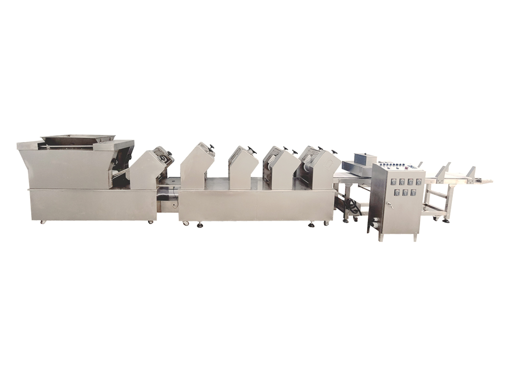 2、疊層機使面帶Z字型折疊,進一步豐富面帶網狀結構,提高面筋度,設備可根據客戶場地需求選擇不同的擺放形式。